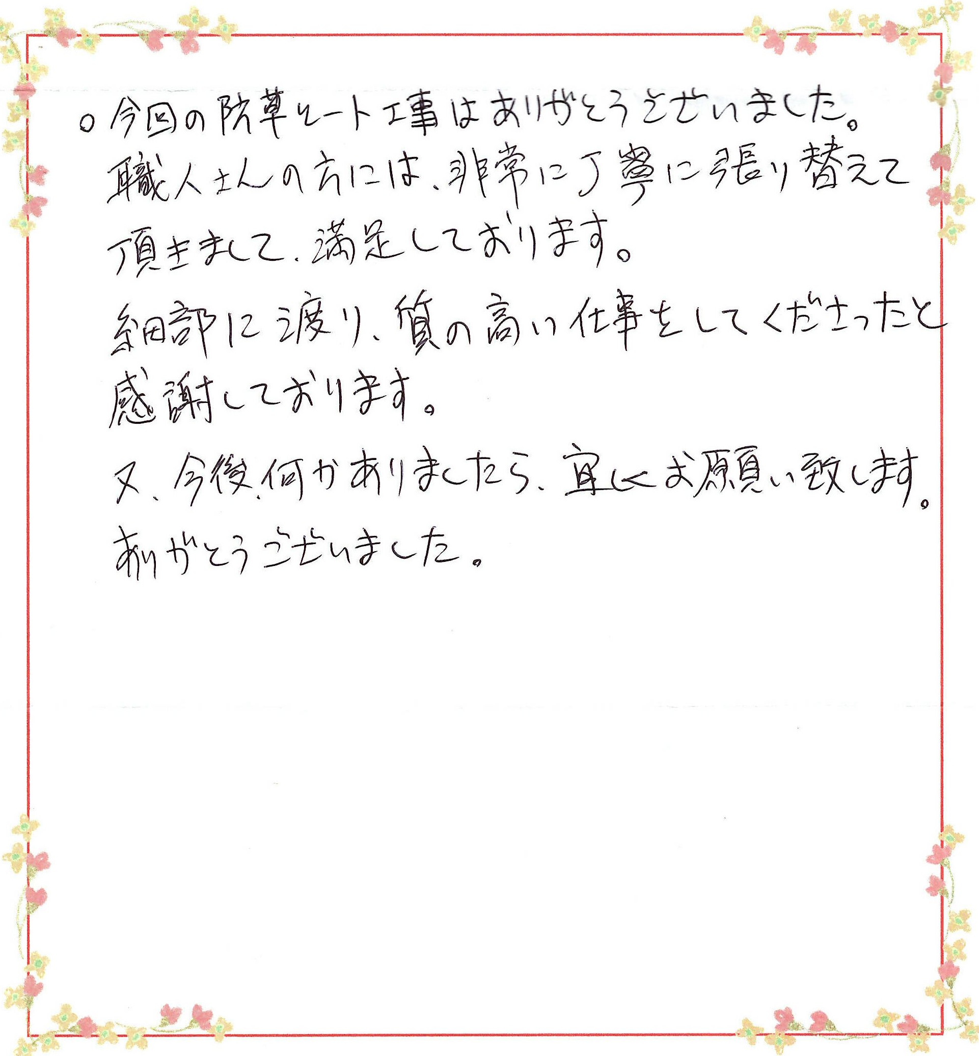 職人さんの方には非常に丁寧に張り替えて頂きまして、満足しております。